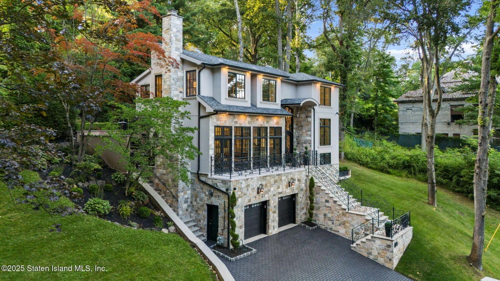 Introducing 44 Annfield Court, the crown jewel of Staten Island's most coveted enclave, Todt Hill. This architectural masterpiece redefines luxury living, blending timeless elegance with modern sophistication across every meticulously designed detail. From the moment you step into the grand foyer, soaring ceilings and walls of glass flood the home with natural light, setting the stage for an unparalleled living experience. The expansive great room is both breathtaking and inviting, showcasing intricate coffered ceilings, dramatic floor-to-ceiling windows, and elegant French doors that open to a private terrace. A custom fireplace anchors the space, creating the perfect atmosphere for both grand entertaining and intimate gatherings. Every finish in this residence speaks to refinement. Exquisite Versace tile flooring infuses the interiors with a touch of glamour, while the chef's dream kitchen is outfitted with professional-grade Sub-Zero and Wolf appliances, honed marble countertops, and abundant custom cabinetry. An adjacent dining area provides a sophisticated setting for unforgettable dinner parties. The primary suite is a sanctuary of indulgence, boasting a palatial walk-in closet and a spa-inspired bath complete with a custom vanity television mirror, soaking tub, and glass-enclosed steam shower with rain feature. Two additional generously proportioned bedrooms and a full bath provide the utmost comfort for family and guests. The fully finished lower level is an entertainer's paradise. Here, a custom wet bar complements a spectacular, climate-controlled wine room designed to house 1,100 bottles at optimal conditions—ideal for connoisseurs and collectors alike. This residence is also a true smart home, fully integrated with Lutron automated lighting and a Crestron home automation system that seamlessly controls lighting, climate, entertainment, and security at the touch of a button. Outdoors, the estate is just as impressive. Lush landscaping frames an expansive patio with a fully equipped outdoor kitchen, pizza oven, and heated spa. A brand-new Techo-Bloc Mika HD pavered driveway with a snowmelt system, along with heated front steps, ensures effortless year-round luxury and convenience. With over 12,000 square feet of property, there is ample room to design and build a pool to suit your vision of outdoor living. Practicality meets indulgence with a spacious garage featuring a car lift for multiple vehicles, while advanced climate systems ensure comfort throughout the seasons: a linear diffusion central A/C system for seamless cooling and multi-zone radiant heat for cozy winters. Every element of 44 Annfield Court has been carefully curated with no expense spared, resulting in a home that is at once innovative, opulent, and timeless. More than a residence, it is an experience-rare opportunity to own a true statement of luxury in one of Staten Island's most distinguished neighborhoods.