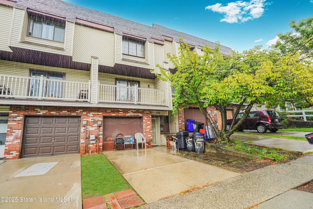 Single-family split-level townhouse located in the Huguenot section of Staten Island. This three-bedroom, one-and-a-half-bath home features a built-in garage with private driveway. The layout offers a living room on one level with its own porch, a separate kitchen and dining room on their own level with direct access to the backyard and patio, and a finished basement set up as a family room with a half bath, laundry, and utilities. The upper levels include three well-sized bedrooms and a full bath. Priced to reflect your vision for future improvements. The community provides a pool, tennis courts, and exterior maintenance, making this property an excellent opportunity in a convenient and amenity-filled neighborhood.