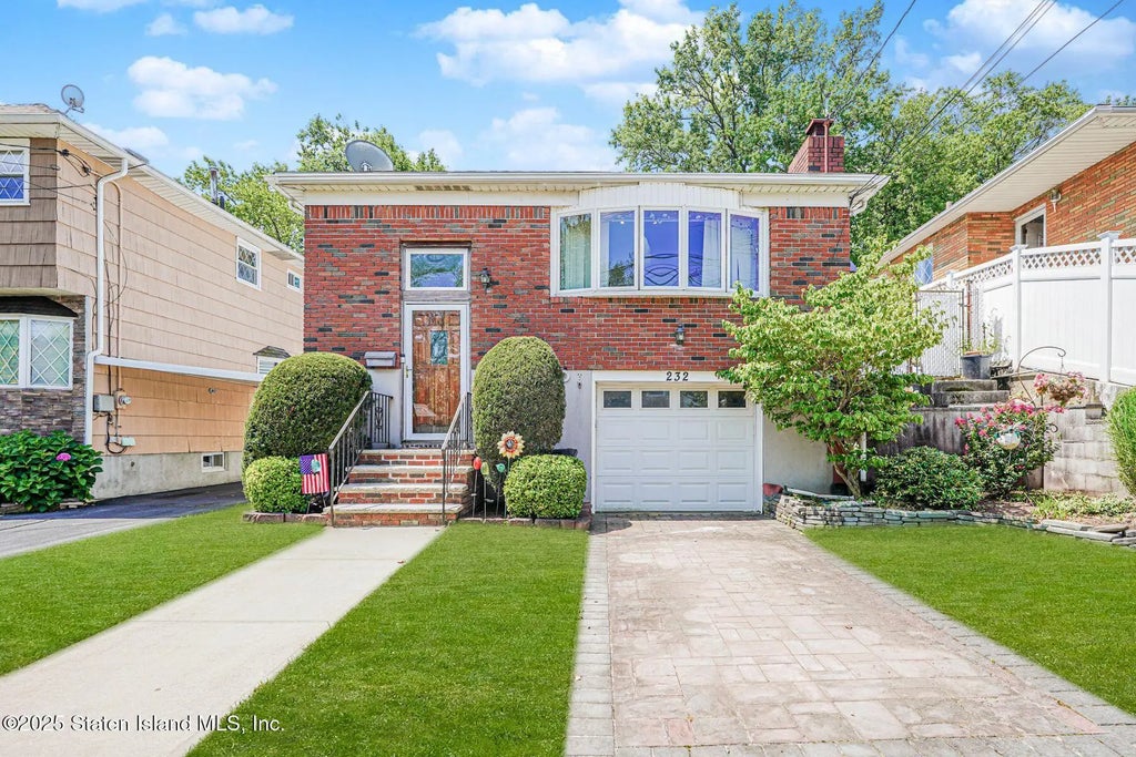 Beautifully situated on a desirable Eltingville block, this well-maintained raised ranch offers 3 bedrooms and 3 baths with easy access to Hylan Blvd, shopping, and transportation. Level 1 features a 1-car garage, spacious finished basement with 3/4 bath, large living area, utility, and storage room. Upstairs boasts an eat-in kitchen with cherrywood cabinets, granite countertops, and stainless steel appliances, plus a formal living and dining room. The primary bedroom includes a private half bath, along with two additional bedrooms and a full bath. Hardwood floors throughout. Newer hot water tank. Set on a 40x100 lot. Dont miss it!