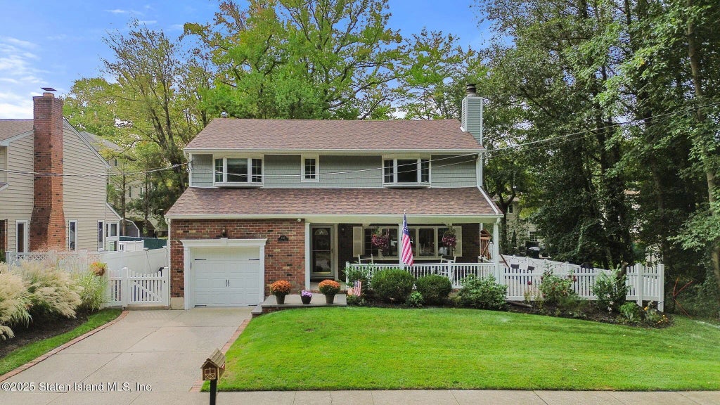 Welcome to this beautifully updated 4 bedroom Colonial, perfectly situated on a quiet dead-end street with a serene private country setting. From the moment you arrive, the inviting covered porch set the tone for this warm and welcoming home. This property offers a peaceful backdrop rarely found in today's market. Step inside to discover a thoughtfully renovated and modernized eat-in kitchen, complete with a large center island, abundant cabinetry, sleek countertops, and updated appliances. Just beyond, the picturesque living room features a classic brick fireplace, creating a cozy gathering space. Entertain with ease in the formal dining room or relax in the spacious family room. Upstairs, the primary bedroom suite offers privacy and convenience with its own 3/4 bath, while three additional well-sized bedrooms provide versatility for family, guests, or a home office. Natural light fills each room, highlighting the home's character and charm. Outdoor living shines here, whether you're enjoying morning coffee on the front porch, listening to the tranquil sounds of the nearby stream, or hosting gatherings in your scenic yard surrounded by mature trees. The peaceful dead-end block ensures minimal traffic, making it an ideal spot for those seeking a quiet retreat with a true neighborhood feel. This home blends classic Colonial style with modern updates and a picturesque country vibe. Conveniently located near shopping, schools, and commuter routes. With its unique setting and move-in-ready interior, this is a rare opportunity to own a property that offers both charm and comfort.